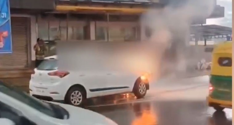 బెంగళూరులోని క్వీన్స్ రోడ్లో టయోటా షోరూమ్ సమీపంలో అగ్ని ప్రమాదం చోటుచేసుకుంది. ఓ కారులో మంటలు చెలరేగి కారు దగ్ధమైంది. హైలెట్ ఏంటంటే వర్షం పడుతుండగా.. కారులో మంటలు రావడం. దీంతో ట్రాఫిక్కు అంతరాయం ఏర్పడింది. ఈ ప్రాంతంలో ప్రయాణిస్తున్న వాహనదారులు అప్రమత్తంగా ఉండాలని అధికారులు సూచించారు. పోలీసులు ఘటనా స్థలానికి చేరుకుని ట్రాఫిక్ను క్లియర్ చేశారు.