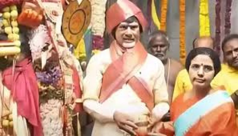 ఏపీ ముఖ్యమంత్రి చంద్రబాబు తన సొంత నియోజకవర్గం కుప్పంలో పర్యటిస్తున్నారు. తన భార్య నారా భువనేశ్వరితో కలిసి ఆయన ప్రసన్న తిరుపతి గంగమ్మ జాతరలో పాల్గొన్నారు. ఈ సందర్భంగా సీఎం దంపతులకు వేద పండితులు పూర్ణకుంభంతో స్వాగతం పలికారు. అనంతరం వీరు అమ్మవారి విశ్వరూప దర్శనం చేసుకున్నారు. అమ్మవారికి సారె సమర్పించి ప్రత్యేక పూజలు నిర్వహించారు. మరోవైపు అమ్మవారి విశ్వరూప దర్శనం ఏడాదికి ఒకసారి మాత్రమే ఉంటుంది. దీంతో, అమ్మవారి విశ్వరూప దర్శనం కోసం భక్తులు భారీగా తరలి వచ్చారు.