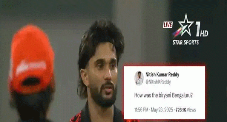 మ్యాచ్ అనంతరం నితీష్కుమార్ రెడ్డి పేరుతో ఉన్న ఎక్స్ ఖాతాలో ఓ పోస్ట్ వెలిసింది. 'బెంగళూరు బిర్యానీ ఎలా ఉందీ?' అంటూ పోస్ట్ చేశారు. ఈ మ్యాచ్లో సన్రైజర్స్ గెలిచినప్పటికీ.. నితీష్ కుమార్ రెడ్డి దారుణంగా విఫలమయ్యాడు. అటు బ్యాటింగ్, ఇటు ఫీల్డింగ్లో వరెస్ట్ పర్ఫార్మెన్స్ చేశాడు. 7 బంతులు ఆడిన నితీష్ కేవలం 4 పరుగులే చేయగా.. ఫీల్డింగ్లో క్యాచ్లు మిస్ చేయడంతో పాటు బౌండరీలు కూడా వదిలేశాడు.