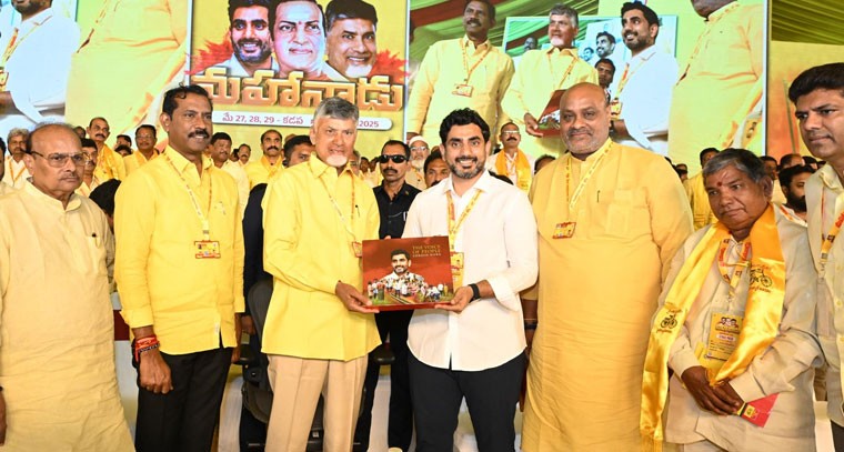 కడపలోని మహానాడు కార్యక్రమంలో సీఎం చంద్రబాబుకు 'యువగళం' పాదయాత్ర పుస్తకాన్ని మంత్రి నారా లోకేశ్ అందించారు. చంద్రబాబు ఆ పుస్తకంలోని అంశాలను పరిశీలించి లోకేశ్ను అభినందించారు. దీంతో లోకేశ్ తన తండ్రి పాదాలకు నమస్కరించారు. అనంతరం తన పాదయాత్రకు సంబంధించిన పుస్తకాన్ని నాన్నగారికి ఇవ్వడం సంతోషంగా ఉందని Xలో ట్వీట్ చేశారు. తన ఈ ప్రయాణంలో సహకరించిన టీడీపీ నాయకులు, ప్రజలకు ఆయన ధన్యవాదాలు తెలిపారు.