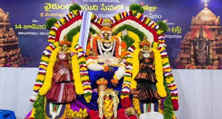 సాయి ట్రస్ట్ ఆధ్వర్యంలో వైకుంఠ వాసుని సేవ కార్యక్రమాన్ని అనంతపురంలో శనివారం ఘనంగా నిర్వహించారు. ఈ సంవత్సరం జేష్ట మాసాని పురస్కరించుకొని హౌసింగ్ బోర్డ్ లోని భక్తాంజనేయ స్వామి దేవాలయంలో ఉదయం 8 గంటల నుండి మధ్యాహ్నం రెండు గంటల వరకు చిన్న జీయర్ స్వామివారి శిష్య బృందం బృందం చే ష్టభిషేకం జేష్ఠభిషేకం , తిరూ కల్యాణోత్సవం, తిరుప్పాడ సేవ 108 రకాల హారతులు నిర్వహించారు.