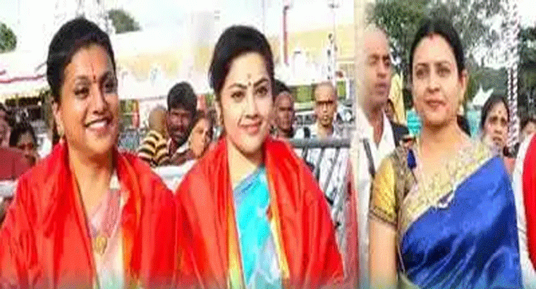 తిరుమల శ్రీవారిని సోమవారం ఉదయం పలువురు ప్రముఖులు దర్శించుకున్నారు. వీఐపీ ప్రారంభ విరామ దర్శనం సమయంలో మాజీ మంత్రి రోజా, సినీ నటి మీనా తిరుమల శ్రీవారిని దర్శించుకున్నారు. స్వామివారిని దర్శించుకుని మొక్కులు చెల్లించునున్నారు. అనంతరం రంగనాయకుల మండపంలో వేద పండితులు వేదాశీర్వచనం అందించగా.. టీటీడీ సిబ్బంది తీర్థ ప్రసాదాలు అందజేశారు. మరోవైపు సినీ నటి ఇంద్రజ కూడా సోమవారం తిరుమల శ్రీవారిని దర్శించుకున్నారు. సినీ తారలు అందరూ ఒకే రోజు దర్శనానికి రావటంతో.. భక్తులు సెల్ఫీలు తీసుకునేందుకు పోటీలు పడ్డారు.