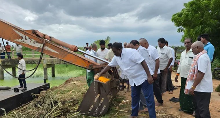 పెడన మండల పరిధిలోని ఇసుకపర్ర మేజర్ డ్రైన్ మరమ్మతు పనులు మంగళవారం మొదలయ్యాయి. పుల్లపాడు పంచాయతీ పరిధిలో చేపట్టిన ఈ కార్యక్రమాన్ని జెడ్పీటీసీ వెంకట నగేష్ ప్రారంభించారు. ఈ డ్రైన్ ద్వారా వందలాది ఎకరాల్లో సాగు జరుగుతుందని, పొలాలు ముంపు బారిన పడకుండా ఉండేందుకు ముందు జాగ్రత్త చర్యగా తూటికాడ, గుర్రపు డెక్క తొలగింపు పనులు చేపట్టినట్లు చెప్పారు.