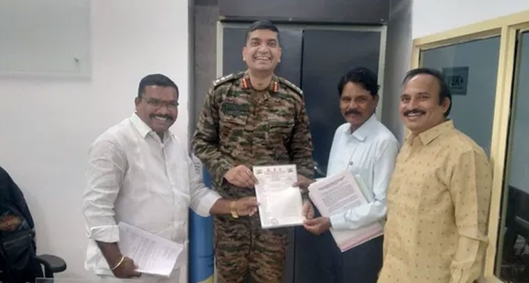 హెడ్ క్వార్టర్స్ తెలంగాణ, ఆంధ్ర సబ్ ఏరియా ద్వారా డిఫెన్స్ క్యాంటీన్ లలో ఉద్యోగాలను మాజీ సైనికులకు మాత్రమే కేటాయించాలని రాష్ట్ర మాజీ సైనిక సంక్షేమ సంఘం అధ్యక్షులు తాండ్ర సాంబశివరావు కోరారు. గురువారం సికింద్రాబాద్ లోని హెడ్ క్వార్టర్స్ తెలంగాణ ఆంధ్ర సబ్ ఏరియా లోని మిలటరీ ఉన్నతాధికారులు కల్నల్ వెటరన్ రామ్ ప్రకాష్ , లెఫ్టినెంట్ కల్నల్ భరద్వాజ్ లను కలిసి వినతి పత్రాన్ని సమర్పించారు.