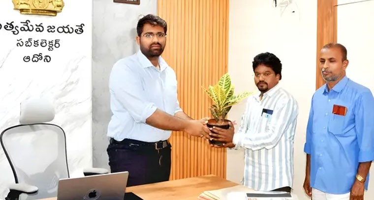 అదోని సబ్ కలెక్టర్ కార్యాలయంలో హౌసింగ్ శాఖ ఎగ్జిక్యూటివ్ ఇంజనీర్ పి. చంద్రశేఖర్ శనివారం సబ్ కలెక్టర్ మౌర్య భారద్వాజ్ను మర్యాదపూర్వకంగా కలిశారు. పట్టణంలోని సబ్ కలెక్టర్ కార్యాలయంలో సబ్ కలెక్టర్ మౌర్య భరద్వాజ్ ను కలిసి ఆయనకు గులాబీ మొక్కను బహుకరిస్తూ అభినందనలు తెలియజేశారు. అనంతరం వారు హౌసింగ్ శాఖ కార్యకలాపాలపై సమీక్షించి, అభివృద్ధి కార్యక్రమాలపై చర్చించారు.