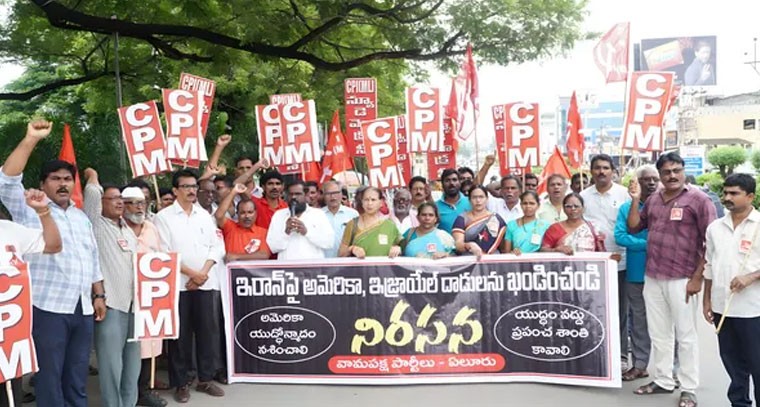 ఇరాన్ పై అమెరికా, ఇజ్రాయెల్ దాడులను ఖండిస్తూ వామపక్ష పార్టీల ఆధ్వర్యంలో బుధవారం ఏలూరులో నిరసన కార్యక్రమం నిర్వహించారు. అమెరికా యుద్ధోన్మాదం నశించాలి. యుద్ధం వద్దు, ప్రపంచ శాంతి కావాలంటూ పెద్ద ఎత్తున నినాదాలు చేశారు. ఈ కార్యక్రమంలో సిపిఎం జిల్లా కార్యదర్శి ఎ. రవి, సిపిఐ (ఎంఎల్) న్యూడెమోక్రసీ కార్యదర్శి బద్దా వెంకట్రావు, ఎంసిపిఐ యు జిల్లా కార్యదర్శి శ్రావణంపూడి నాగరాజు పాల్గొన్నారు.