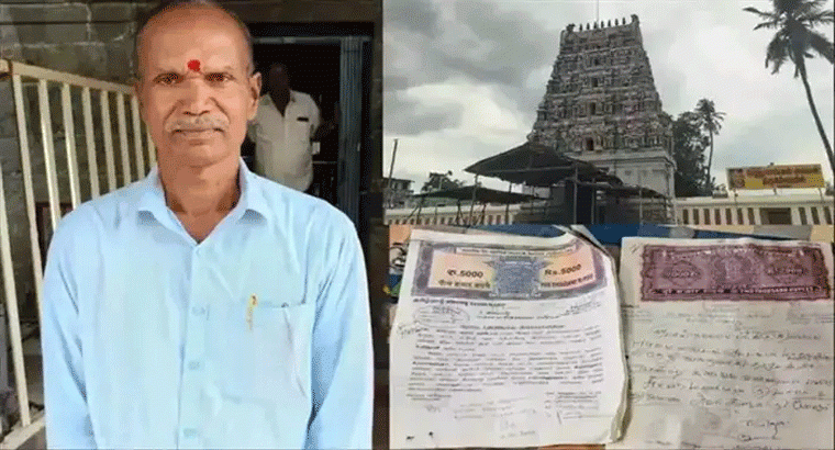 తమిళనాడు రాష్ట్రం తిరువణ్ణామలై జిల్లాలోని పడవేడు గ్రామానికి చెందిన 65 ఏళ్ల మాజీ సైనికాధికారి విజయన్.. ఆయన భార్య కస్తూరి మధ్య గొడవలు జరుగుతున్నాయి. కొంతకాలం క్రితమే వీరిద్దరి మధ్య మనస్పర్థలు రాగా.. ప్రస్తుతం వీరిద్దరూ వేర్వేరుగా ఉంటున్నారు. ఈ కలహాల నేపథ్యంలో విజయన్ తీసుకున్న ఒక నిర్ణయం అందరినీ ఆశ్చర్యానికి గురిచేసింది. ముఖ్యంగా ఆయన తన కుటుంబానికి చెందిన రూ.4 కోట్ల విలువైన ఆస్తి పత్రాలను పడవేడులోని ప్రసిద్ధ రేణుకాంబాల్ ఆలయ హుండీలో వేశారు.