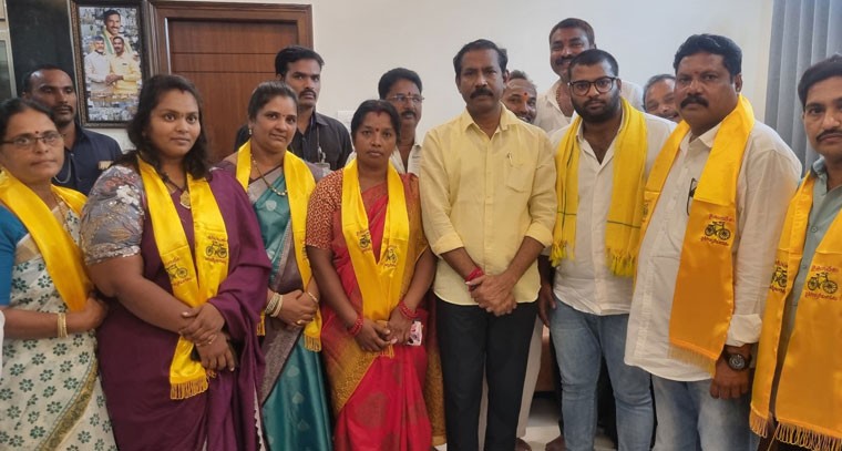 విజయవాడ కుంచనపల్లి లో రాష్ట్ర తెలుగుదేశం పార్టీ అధ్యక్షులు శ్రీ పల్లా శ్రీనివాసరావు గారి క్యాంపు కార్యాలయంలో యువ నాయకులు నల్లమిల్లి మనోజ్ రెడ్డి గారు ఆధ్వర్యంలో వైస్సార్సీపీ నాయకులు, అనపర్తి ఎంపీపీ అనసూరి సూర్యనారాయణ,అనపర్తి ఎంపీటీసీ -7 పద్మావతి,అనపర్తి వైస్ ఎంపీపీ పులగం బుల్లిరెడ్డి, పెడపర్తి ఎంపీటీసీ తమలంపూడి మణి, రామవరం ఎంపీటీసీలు నల్లమిల్లి భాగ్యలక్ష్మి,గొలుగూరి గౌతమి గార్లకు టిడిపి కండువా కప్పి పార్టీలోకి ఆహ్వానించిన రాష్ట్ర టిడిపి అధ్యక్షులు, గాజువాక ఎమ్మెల్యే పల్లా శ్రీనివాసరావు గారు.