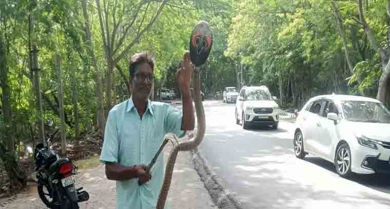 తిరుమలలో భక్తులకు పాముల బెడద లేకుండా చేసే టీటీడీ ఉద్యోగి భాస్కర నాయుడు, పామును పట్టే క్రమంలో మళ్లీ పాము కాటుకు గురయ్యారు. తిరుమలలోని గోగర్భం డ్యాం సమీపంలోని గార్డెన్లో శనివారం నాగుపామును పట్టుకుని బ్యాగులో వేస్తుండగా అతడి ఎడమచేతిపై కాటేసింది. రెండు నిమిషాల్లోనే కుప్పకూలిన భాస్కర నాయుడిని అక్కడి ఉద్యోగులు హుటాహుటిన తిరుమలలోని అశ్విని ఆస్పత్రికి తరలించారు. విషం విరుగుడు మెడిసన్(యాంటీ వీనం) ఇచ్చినప్పటికీ పరిస్థితి విషమంగా మారడంతో వెంటిలేటర్పై తిరుపతిలోని అమర ఆస్పత్రికి తరలించి వైద్యం అందిస్తున్నారు.1982లో టీటీడీ అటవీశాఖలో కార్మికుడిగా చేరిన భాస్కర నాయుడి నైపుణ్యం గమనించి పాములు పట్టేందుకు ఆయనకు ప్రత్యేక విధులు కేటాయించారు. 2021లో రిటైరైనప్పటికీ కాంట్రాక్ట్ ఉద్యోగిగా మళ్లీ విధుల్లోకి తీసుకున్నారు. ఇప్పటి వరకు ఆయన దాదాపు 14 వేలకు పైగా పాములు పట్టారు. 2022 జనవరిలో ఒకసారి తిరుపతిలో విషపూరితమైన పాము కాటేయడంలో నెలరోజుల పాటు ఆస్పత్రిలో చికిత్స పొంది కోలుకుని మళ్లీ విధుల్లోకి చేరారు. కాగా, ప్రస్తుతం ఆయన కోలుకుంటున్నారని టీటీడీ అటవీ విభాగ అధికారులు తెలిపారు.