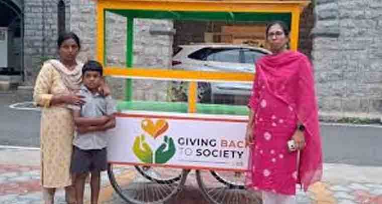 గుంటూరు నగరంలోని వెంకట్రావుపేటకు చెందిన అలవాల యశ్వంత్ అనే బాలుడి కుటుంబానికి మంగళగిరికి చెందిన గివింగ్ బ్యాక్ టూ సొసైటీ ఆసరాగా నిలిచింది. జీజీహెచ్ వద్ద రైల్వే ేస్టషన్ వైపు ఉన్న తమ టిఫిన్ బండిని తొలగించారని, ఆస్పత్రి బయట ఎక్కడైనా కుటుంబానికి జీవనాధారమైన టిఫిన్ బండి పెట్టుకునేందుకు అవకాశం కల్పించాలని కలెక్టర్ నాగలక్ష్మికి యశ్వంత్ అనే పదేళ్ల బాలుడు సోమవారం విజ్ఞప్తి చేశాడు. ఈ ఉదంతంపై మీడియాలో విస్తృత ప్రచారం కావడంతో గివింగ్ బ్యాక్ టూ సొసైటీ స్పందించింది. టిఫిన్ బండి అందజేయాలని నిర్ణయం తీసుకుంది. కలెక్టర్ నాగలక్ష్మి చేతుల మీదుగా బాలుడి తల్లి అలవాల రాధికకు మంగళవారం టిఫిన్ బండి అందజేశారు. తమ కుటుంబానికి జీవనోపాధి కల్పించే విధంగా కొత్త టిఫిన్ బండి అందజేసిన గివింగ్ బ్యాక్ టూ సొసైటీ ప్రతినిధులకు బాలుడి కుటుంబ సభ్యులు కృతజ్ఞతలు తెలిపారు. కలెక్టర్ మాట్లాడుతూ గివింగ్ బ్యాక్ టూ సొసైటీ ప్రతినిధుల సేవా కార్యక్రమాలను అభినందించారు. సేవా భావంతో చేసే కార్యక్రమాలు ఎంతో సంతృప్తినిస్తాయన్నారు. జీవితంలో ఉన్నతస్థాయికి ఎదిగిన వారు సమాజం కోసం తమ సంపాదనలో కొంత భాగాన్ని కేటాయించాలన్నారు. ముఖ్యంగా ఉన్నత కుటుంబాలకు చెందిన వారు దీనిని బాధ్యతగా భావించాలని సూచించారు.