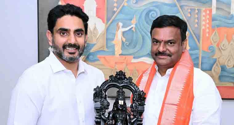 మంత్రి లోకేశ్ను బీజేపీ రాష్ట్ర అధ్యక్షుడిగా నియమితులైన మాధవ్ మర్యాదపూర్వకంగా కలిశారు. ఉండవల్లి నివాసంలో బుధవారం జరిగిన ఈ భేటీ సందర్భంగా మాధవ్తో కలిసి శాసనమండలిలో పనిచేసిన విషయాన్ని లోకేశ్ గుర్తు చేశారు. ప్రతిపక్షంలో ఉండగా ప్రజాసమస్యలపై శాసనమండలి వేదికగా కలిసి పోరాడిన సందర్భాలు చాలా ఉన్నాయని ఇద్దరు నేతలు గుర్తు చేసుకున్నారు. రాష్ట్ర సమగ్రాభివృద్ధి కోసం కలసి పనిచేద్దామని లోకేశ్ పేర్కొన్నారు.