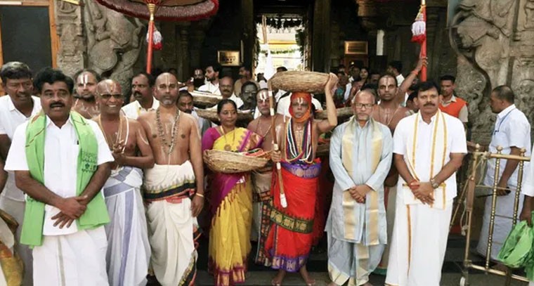 ఆణివార ఆస్థాన పర్వదినాన్ని పురస్కరించుకొని శ్రీరంగం శ్రీరంగనాథస్వామి ఆలయం తరఫున తిరుమల శ్రీవారికి బుధవారం పట్టువస్త్రాలు సమర్పించారు. తిరుమల పెద్ద జీయర్ మఠంలో ప్రత్యేక పూజల అనంతరం, టీటీడీ ఛైర్మన్ బీఆర్ నాయుడు, ఈవో జె. శ్యామలరావు, తమిళనాడు దేవాదాయ శాఖ కార్యదర్శి శ్రీధరన్, జీయర్ స్వాములు కలిసి మంగళవాయిద్యాల నడుమ నాలుగు మాడ వీధుల ద్వారా ఊరేగింపుగా ఆలయానికి తీసుకెళ్లి స్వామివారికి సమర్పించారు.