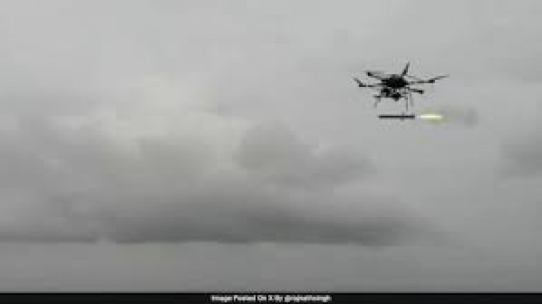 డ్రోన్ నుండి క్షిపణి ప్రయోగాన్ని విజయవంతంగా పరీక్షించినట్లు కేంద్ర రక్షణ శాఖ మంత్రి రాజ్నాథ్ సింగ్ తెలిపారు. ఈ పరీక్ష ఆంధ్రప్రదేశ్లోని కర్నూలు జిల్లాలో గల నేషనల్ ఓపెన్ ఏరియా రేంజి లో జరిగింది. ఈ ప్రయోగానికి సంబంధించిన ఫొటోను ఆయన 'ఎక్స్' వేదికగా పంచుకున్నారు.డీఆర్డీఓ, ఈ క్షిపణి అభివృద్ధి మరియు తయారీలో భాగస్వాములైన ఎంఎస్ఎంఈలు, స్టార్టప్స్లను రాజ్నాథ్ సింగ్ అభినందించారు. సంక్లిష్టమైన సాంకేతికతను అర్థం చేసుకోవడంతో పాటు ఉత్పత్తి చేయగల సామర్థ్యం భారతదేశానికి ఉందని ఈ పరీక్ష నిరూపించిందని ఆయన పేర్కొన్నారు.దేశీయంగా అభివృద్ధి చేసిన ఈ క్షిపణిని యూఏవీ లాంచ్డ్ ప్రెసిషన్ గైడెడ్ మిసైల-వీ3గా వ్యవహరిస్తున్నారు. అయితే, దీని సాంకేతిక వివరాలను వెల్లడించలేదు. గతంలో డీఆర్డీవో పత్రాలు, బహిరంగ సమాచారం ప్రకారం గతంలో పరీక్షించిన యూఎల్పీజీఎం-వీ2 వేదికపైనే దీనిని అభివృద్ధి చేశారు.కర్నూలు జిల్లా ఓర్వకల్లు మండలం పాలకొలను సమీపంలోని డీఆర్డీవోకు చెందిన ఎన్ఓఏఆర్ పరీక్ష కేంద్రాన్ని దీని కోసం ఎంచుకున్నారు. గతంలో కూడా ఇక్కడ డైరెక్టెడ్ ఎనర్జీ వెపన్స్ వ్యవస్థను పరీక్షించేందుకు ఇదే వేదికను ఉపయోగించారు. ఈ ఆయుధం ఫిక్స్డ్వింగ్ మానవరహిత విమానాలను కూల్చివేయడానికి ఉపయోగిస్తారు.