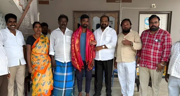 ఇటీవల వెలువడిన కానిస్టేబుల్ ఉద్యోగాల ఫలితాల్లో పెనుగంచిప్రోలు మండలం, పోన్నవరం గ్రామానికి చెందిన గొర్రెపాట్టి రంజిత్ స్పోర్ట్స్ కోటాలో కానిస్టేబుల్ ఉద్యోగం సాధించాడు. మంగళవారం నియోజకవర్గ వైసీపీ ఇన్చార్జ్ తన్నీరు నాగేశ్వరరావు వారి నివాసానికి వెళ్లి రంజిత్ ని శాలువాతో సన్మానించి శుభాకాంక్షలు తెలియజేశామన్నారు. వారితో పాటు రాష్ట్ర ఎంపీపీ సంఘాల అధ్యక్షులు గాంధీ, రాష్ట్ర సంయుక్త కార్యదర్శి శ్రీనివాస్ గౌడ్, నియోజకవర్గ ఐటీ వింగ్ రంజిత్, ఉప సర్పంచ్ లక్ష్మణ్ నారాయణ, పాల్గొన్నారు.