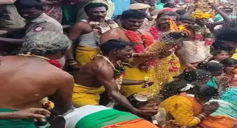 తమిళనాడులోని కరూర్ జిల్లాలో ఉన్న మెట్టుమహదానపురం గ్రామంలో శ్రీ మహాలక్ష్మి అమ్మన్ దేవాలయం ఉంటుంది. అక్కడే ప్రస్తుతం పెరుక్కు ఉత్సవాలు జరుగుతున్నాయి. అయితే ఈ సమయంలో అక్కడికెళ్లే భక్తులు తమ తలలపై కొబ్బరి కాయలు కొట్టించుకుని మొక్కులు తీర్చుకుంటూ ఉంటారు. వినేందుకు చాలా వింతగా అనిపిస్తున్నప్పటికీ.. చాలా ఏళ్లుగా అక్కడ ఈ సంప్రదాయం కొనసాగుతోంది. ఈ ఆచారం వినడానికే కాదండోయ్.. చూడటానికి మరింత ఆశ్చర్యకరంగా అనిపిస్తుంది. ఎందుకంటే ఆలయ పూజారులు.. ఒకరి తరువాత మరొకరి భక్తుల తలలపై కొబ్బరికాయలు కొడతారు. ఈ ప్రక్రియలో తలలకు గాయాలు కావడం సర్వసాధారణం.