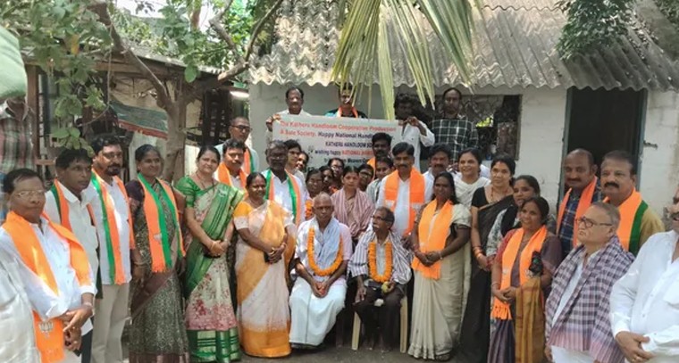 రాజమండ్రి రూరల్ మండలం కాతేరులో జాతీయ చేనేత దినోత్సవ కార్యక్రమాన్ని రూరల్ బీజేపీ కో కన్వీనర్ యానాపు ఏసు ఆధ్వర్యంలో గురువారం నిర్వహించారు. ఈ సందర్భంగా చేనేత వర్తక సంఘం సొసైటీ వారికి సత్కారం చేశారు. జిల్లా అధ్యక్షులు పిక్కి నాగేంద్ర మాట్లాడుతూ, ప్రధాని మోడీ పిలుపుమేరకు ప్రతి ఒక్కరూ ఖాదీ వస్త్రాలు కొనుగోలు చేసి చేనేత కార్మికులకు అండగా నిలవాలని సూచించారు.