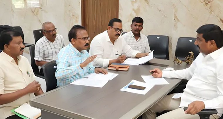 నంద్యాల జిల్లా బనగానపల్లెలో యూరియా కృత్రిమ కొరతపై వ్యవసాయ శాఖ అధికారులతో మంత్రి బీసీ జనార్థన్ రెడ్డి సమీక్ష నిర్వహించారు. రైతులు యూరియాను అవసరం మేరకే కొనుగోలు చేయాలని మంత్రి గురువారం సూచించారు. త్వరలో జిల్లాకు 10 వేల మెట్రిక్ టన్నుల యూరియా వస్తుందని, పంట విస్తీర్ణం పెరిగినందున అవసరమైన యూరియాను ప్రభుత్వం అందిస్తుందని ఆయన భరోసా ఇచ్చారు.