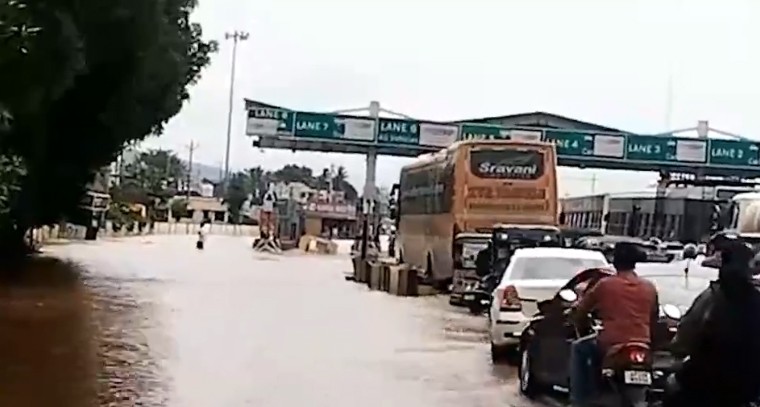 ఏపీలోని పలు జిల్లాల్లో భారీ వర్షాలు కురుస్తున్నాయి. మంగళగిరి కాజా టోల్ ప్లాజా జలదిగ్భంధంలో చిక్కుకుంది. గుంటూరు-విజయవాడ రహదారిపై రాకపోకలు నిలిచిపోయాయి. ఒకవైపు వాహనాలు పోగా, మరో వైపు రహదారి పూర్తిగా బ్లాక్ అయ్యింది. మంగళగిరి NRI వై జంక్షన్ వద్ద భారీ వరద నీరు చేరింది. మాచవరం (మం) పిల్లుట్లలో పీలేరు వాగు ఉధృతిగా ప్రవహిస్తోంది. మాచవరం, బెల్లంకొండ మండలాల్లోనూ రాకపోకలు నిలిచిపోయాయి.