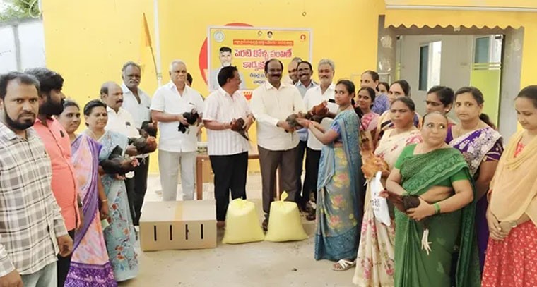 మహిళలు పెరటి కోళ్ల పెంపకం ద్వారా ఆదాయాన్ని పొందవచ్చని రెవెన్యూ శాఖ మంత్రి అనగాని సత్యప్రసాద్ సోదరుడు శివప్రసాద్ అన్నారు. సోమవారం రేపల్లె మండల సమైక్య పరిధిలోని స్వయం సహాయక సంఘాల మహిళలకు పౌష్టికాహారం అందించే లక్ష్యంతో రాష్ట్ర ప్రభుత్వం అందిస్తున్న పెరటి కోళ్లను ఆయన అందజేశారు. ఈ కోళ్ల ద్వారా వచ్చే గుడ్లు పౌష్టికాహారంతో పాటు రక్తహీనతను నివారించడంలో సహాయపడతాయని, మంత్రి అనగాని సత్యప్రసాద్ సహకారంతో మహిళలకు ఆర్థిక భరోసా కల్పిస్తున్నామని ఆయన తెలిపారు.