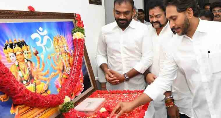 వైయస్ఆర్ కాంగ్రెస్ పార్టీ కేంద్ర కార్యాలయంలో విశ్వకర్మ జయంతి కార్యక్రమం ఘనంగా నిర్వహించారు. భగవాన్ విశ్వకర్మ, గాయత్రీ మాత చిత్రపటాలకు వైయస్ఆర్ కాంగ్రెస్ పార్టీ అధ్యక్షుడు, మాజీ ముఖ్యమంత్రి వైయస్ జగన్ మోహన్ రెడ్డి పూలమాల వేసి నివాళులర్పించారు. కార్యక్రమంలో ఎమ్మెల్సీలు రమేష్ యాదవ్, లేళ్ళ అప్పిరెడ్డి, ఎమ్మెల్యే విరూపాక్షి, వైయస్ఆర్సీపీ నాయకులు పవిత్ర మురళీకృష్ణ, తోలేటి శ్రీకాంత్, ఉదయ్, అంకంరెడ్డి నారాయణమూర్తి, మల్లికార్జున్, బ్రహ్మం తదితరులు పాల్గొన్నారు.