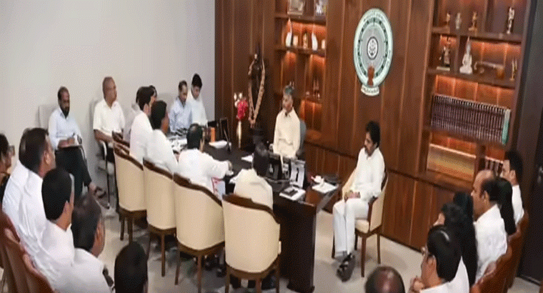 ముఖ్యమంత్రి నారా చంద్రబాబు నాయుడు అధ్యక్షతన జరిగిన ఏపీ కేబినెట్ భేటీలో పలు కీలక నిర్ణయాలు తీసుకున్నారు. అసెంబ్లీ ప్రాంగణంలో చంద్రబాబు అధ్యక్షతన ఆంధ్రప్రదేశ్ మంత్రివర్గ సమావేశం జరిగింది. ఈ భేటీలో 13 బిల్లులకు మంత్రిమండలి చర్చించి ఆమోదం తెలిపింది. నాలా ఫీజు రద్దుకు సంబంధించి వివిధ చట్టాలను సవరించాలనే ప్రతిపాదనలకు ఏపీ కేబినెట్ ఆమోదం తెలిపింది. అలాగే వైఎస్సార్ తాడిగడప మున్సిపాలిటీ పేరును తాడిగడప మున్సిపాలిటీగా మార్చే ప్రతిపాదనకు ఏపీ మంత్రివర్గం ఆమోదం తెలిపింది. ఇక అమరావతి పరిధిలో 343 ఎకరాల భూమిని సేకరించేందుకు గతంలో ఇచ్చిన భూ సేకరణ నోటిఫికేషన్ వెనక్కి తీసుకోవాలని ఏపీ ప్రభుత్వం నిర్ణయించింది. ఈ నేపథ్యంలో ఈ ప్రతిపాదనకు కూడా ఏపీ కేబినెట్ ఆమోదం తెలిపింది. వీటితో పాటుగా ఓటర్ల జాబితా తయారీ కోసం మరో మూడు తేదీలు ఖరారు చేయాలని మంత్రిమండలి సమావేశంలో నిర్ణయం తీసుకున్నారు.