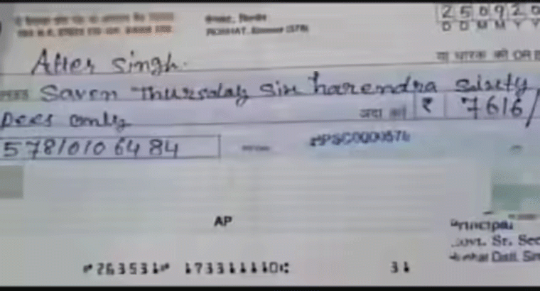 హిమాచల్ ప్రదేశ్లో ప్రభుత్వ పాఠశాల ప్రధానోపాధ్యాయుడిగా పని చేస్తున్న ఈ వ్యక్త.. సరైన స్పెల్లింగ్తో చెక్ కూడా రాయలేకపోవడం ఇప్పుడు సోషల్ మీడియాలో తీవ్ర విమర్శలకు దారి తీస్తోంది. ఆ ప్రిన్సిపాల్ తన పాఠశాలలో మధ్యాహ్న భోజన కార్మికులకు చెల్లించాల్సిన రూ.7, 616ను (రూపాయిల అంకెల్లో) రాశారు. కానీ ఆ అంకెలను ఇంగ్లీషు పదాల్లో రాసేటప్పుడు చేసిన ఘోరమైన స్పెల్లింగ్ తప్పులు అందరినీ ఆశ్చర్యానికి గురి చేస్తున్నాయి.