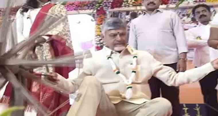 విజయవాడ నగరంలోని ఎస్.ఎస్.కన్వెన్షన్లో నిర్వహించిన ఖాదీ సంత కార్యక్రమానికి ముఖ్య అతిథిగా సీఎం చంద్రబాబు నాయుడు హాజరయ్యారు. గురువారం గాంధీ జయంతి సందర్భంగా.. ఆయన విగ్రహానికి పూలమాల వేసి నివాళులు అర్పించారు. అలాగే అక్కడ ఏర్పాటు చేసిన చరఖాను స్వయంగా చంద్రబాబు తిప్పారు. అనంతరం స్వదేశీ సంత ఆవరణలో ఏర్పాటు చేసిన దుర్గాదేవికి పూజలు నిర్వహించారు. ఈ సందర్భంగా సమీవృక్ష పూజను తెలంగాణలో చాలా బాగా చేస్తారని గుర్తు చేసుకున్నారు చంద్రబాబు. సమీవృక్ష ఆకులను తెల్ల బంగారంగా అభివర్ణిస్తారని, శత్రువులంతా నాశనం అవ్వాలని జేబుల్లో వేసుకుంటారని ముఖ్యమంత్రి వివరించారు. దసరా రోజు పాలపిట్టను చూస్తే మంచి జరుగుతుందని పేర్కొన్నారు. అనంతరం ఖాదీ సంతలో ఏర్పాటు చేసిన స్టాల్స్ను సందర్శించి, అక్కడ ఉన్న చేతి వృత్తుల వారితో మాట్లాడి వాటి గురించి అడిగి తెలుసుకున్నారు.