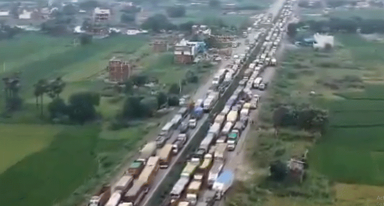 ఢిల్లీ - కోల్కతా హైవేపై నాలుగు రోజులుగా భారీ ట్రాఫిక్ జామ్. రోడ్లపైనే పడిగాపులు కాస్తూ నరకయాతన అనుభవిస్తున్న వాహనదారులు. బీహార్లోని ఔరంగాబాద్ - రోహ్తాస్ మద్యలో భారీ వర్షానికి హైవేను ముంచెత్తిన వరద నీరు. దీంతో 65 కిలోమీటర్ల మేర భారీ ట్రాఫిక్ జామ్. అధికారుల సమన్వయ లోపంతో వాహనాలు హైవే పైకి వచ్చి మరింత ట్రాఫిక్ జామ్. నాలుగు రోజులుగా సరైన ఆహారం, నీళ్ళు లేక తీవ్ర ఇబ్బందులు పడుతున్నామని ఆవేదన వ్యక్తం చేస్తున్న వాహనదారులు