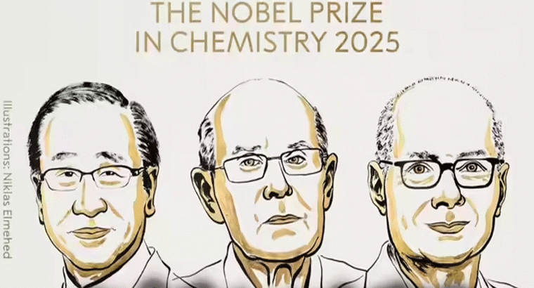 ఈ ఏడాదికి సంబంధించి నోబెల్ బహుమతుల ప్రకటన ప్రక్రియ సోమవారం నుంచి ప్రారంభమైన సంగతి తెలిసిందే. ఇప్పటికే మెడిసిన్, ఫిజిక్స్ విభాగాల్లో ఈసారి నోబెల్ పురస్కారానికి ఎంపికైన వారి పేర్లను ప్రకటించగా.. తాజాగా కెమిస్ట్రీలో ముగ్గురికి నోబెల్ పురస్కారం వరించింది. సుసుము కిటాగవా, రిచర్డ్ రాబ్సన్, ఒమర్ యాఘీలకు.. రసాయన శాస్త్రంలో చేసిన పరిశోధనలకు గానూ నోబెల్ బహుమతి దక్కింది. ఈ ముగ్గురు శాస్త్రవేత్తలు మెటల్ ఆర్గానిక్ ఫ్రేమ్వర్క్స్ అభివృద్ధి కోసం విశేష కృషి చేయగా.. అందుకు ఈ నోబెల్కు ఎంపికయ్యారు.