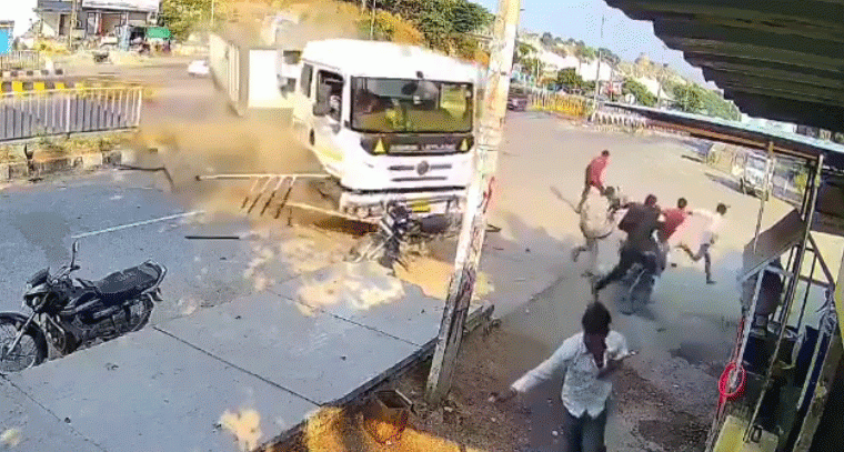 రాజస్థాన్ రాష్ట్రంలోని రాజ్‌సమంద్ జిల్లాలో బుధవారం ఘోర ప్రమాదం తప్పింది. కెల్వా గ్రామంలో వేగంగా వచ్చిన ఓ భారీ ట్రక్కు నియంత్రణ కోల్పోయి టీ స్టాల్‌లోకి దూసుకెళ్లింది. ట్రక్కు రోడ్డుపై ఉన్న బారికేడ్లను ఢీకొట్టడంతో టీ షాప్ వద్ద ఉన్న ప్రజలు వెంటనే అప్రమత్తమై దూరంగా పరుగెత్తారు. ఈ ప్రమాద దృశ్యాలు అక్కడి CCTVలో రికార్డ్ అయ్యాయి. అదృష్టవశాత్తూ ఎటువంటి ప్రాణనష్టం జరగపోవడంతో అంతా ఊపిరిపీల్చుకున్నారు.