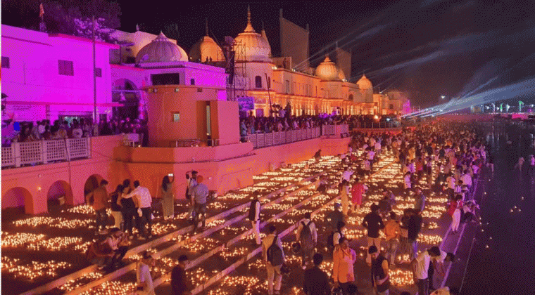 భారత్ వ్యాప్తంగా దీపావళి ఉత్సవాలు ఘనంగా జరుగుతున్న వేళ, రామజన్మభూమిగా పేరుగాంచిన పవిత్ర అయోధ్యలో దీపోత్సవం చరిత్రలో నిలిచిపోయే ఘట్టంగా మారింది. ఈ ఏడాది నిర్వహించిన దీపోత్సవంలో ఏకంగా రెండు గిన్నిస్ వరల్డ్ రికార్డులు నమోదయ్యాయి. దీనితో అయోధ్య మరోసారి ప్రపంచ దృష్టిని ఆకర్షించింది.ఈ వేడుకలకు ఉత్తరప్రదేశ్ ముఖ్యమంత్రి యోగి ఆదిత్యనాథ్ ముఖ్య అతిథిగా హాజరయ్యారు. మొదటగా రామమందిరంలో ప్రత్యేక పూజలు నిర్వహించిన ఆయన, అనంతరం "రామ్ కీ పైడీ" ఘాట్ వద్ద హారతి ఇచ్చారు. ఈ కార్యక్రమంలో రాముడు, సీత, లక్ష్మణుడు, హనుమంతుడు వేషధారణలో ఉన్న కళాకారులతో కూడిన రథాన్ని సీఎం స్వయంగా లాగారు. ఆ తర్వాత తొలి దీపాన్ని వెలిగించి దీపోత్సవాన్ని అధికారికంగా ప్రారంభించారు. ఈ సందర్భంగా నమోదైన రెండు గిన్నిస్ రికార్డుల సర్టిఫికెట్లను ఆయన స్వీకరించారు.ఈ రికార్డుల్లో మొదటిది—ఒకేసారి 26,70,215 మట్టి దీపాలను వెలిగించడం. రెండవది—సరయూ నది తీరాన 2128 మంది పూజారులు ఏకకాలంలో మహా ఆరతి నిర్వహించడం. ఈ విశేష ఘట్టం జరుగుతుండగా, అయోధ్య నగరం వెలుగుల హారంగా మారిపోయింది. సరయూ నది తీరంలోని ఘాట్లు వేలాది దీపాలతో మెరిసిపోగా, వాటి కాంతి నదిపై ప్రతిబింబించి ఒక అద్భుత దృశ్యాన్ని సృష్టించింది. ఆ వెలుగు ఆకాశంలోని నక్షత్రాలు భూమిపైకి దిగినట్టుగా అనిపించింది.వేడుకల్లో భాగంగా "జై శ్రీరామ్" నినాదాలు మారుమోగుతుండగా, రామలీలా ప్రదర్శనలు, సాంప్రదాయ నృత్యాలు, లేజర్ షోలు, అద్భుతమైన ఫైర్వర్క్స్ భక్తులను ఆకట్టుకున్నాయి. లేజర్ షోతో ఆకాశం రంగుల కాంతులతో ముస్తాబయ్యింది.ఈ దీపోత్సవం ప్రారంభమైనది 2017లో. ఆ సమయంలో కేవలం 1.71 లక్షల దీపాలు మాత్రమే వెలిగించగా, తొమ్మిదవ ఎడిషన్గా నిర్వహించిన ఈ ఏడాది దీపాల సంఖ్య 2.6 మిలియన్ల (అంటే 26 లక్షల 70 వేల 215) దాటడం విశేషం. దేశం నలుమూలల నుంచే కాకుండా విదేశాల నుంచి కూడా వేలాది మంది భక్తులు ఈ వేడుకను ప్రత్యక్షంగా వీక్షించేందుకు అయోధ్యకు తరలివచ్చారు.భద్రతా పరంగా కూడా ప్రభుత్వం కఠిన చర్యలు తీసుకుంది. 10,000 మందికి పైగా పోలీసు సిబ్బందిని మోహరించడంతో పాటు, డ్రోన్లు మరియు సీసీటీవీల సహాయంతో నగరమంతా పర్యవేక్షణ నిర్వహించబడింది.ఇక ఈ దీపోత్సవం పర్యావరణహితంగా ఉండేలా ప్రత్యేక ఏర్పాట్లు చేశారు. మట్టి దీపాలను స్థానిక కళాకారులతో తయారు చేయించడంతో పాటు, ఉపయోగించిన నూనెను జైవ ఉత్పత్తులుగా మళ్లీ వినియోగించే విధంగా చర్యలు తీసుకున్నారు. దీపాల తయారీలో గ్రీన్ మిషన్ భాగస్వామిగా ఉన్నట్లు అధికారులు తెలిపారు.