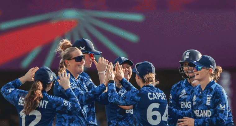 2025 ICC మహిళల వన్డే ప్రపంచకప్లో భారత్ vs ఇంగ్లండ్ మధ్య జరిగిన మ్యాచ్ ఉత్కంఠభరితంగా సాగింది. అక్టోబర్ 19న ఇండోర్ వేదికగా జరిగిన ఈ రోమాంచక పోరులో ఇంగ్లండ్ జట్టు 4 పరుగుల తేడాతో విజయాన్ని సొంతం చేసుకుంది.ఈ ఓటమితో భారత్కు సెమీఫైనల్ అవకాశాలపై గట్టి ప్రభావం పడింది. ఇకపై మిగిలిన మ్యాచ్లను గెలిచే దిశగా భారత్ దృష్టి పెట్టాల్సిన అవసరం ఏర్పడింది.ఈ మ్యాచ్లో ఇంగ్లండ్ టాస్ గెలిచి ముందుగా బ్యాటింగ్ చేసింది. ఓపెనర్లు మంచి ఆరంభాన్ని ఇవ్వగా, వన్డౌన్లో వచ్చిన హీథర్ నైట్ అద్భుత సెంచరీతో జట్టును బలంగా నిలిపారు. ఆమె 91 బంతుల్లో 109 పరుగులు (15 ఫోర్లు, 1 సిక్స్) చేసి రాణించగా, ఓపెనర్ యామీ జోన్స్ 56 పరుగులు చేశారు. కెప్టెన్ నాట్ సీవర్ బ్రంట్ 38 పరుగులతో మద్దతిచ్చారు.మరోవైపు, ట్యామీ బేమౌంట్ 22, సోఫీ డంక్లీ 11, అలైస్ క్యాప్సీ 2, సోఫీ ఎక్లెస్టోన్ 3 పరుగులకే వెనుదిరిగారు. ఛార్లోట్ డీన్ (19) మరియు లిన్సే స్మిత్ (0) నాటౌట్గా నిలిచారు. మొత్తంగా ఇంగ్లండ్ జట్టు 50 ఓవర్లలో 8 వికెట్లకు 288 పరుగులు చేసింది.భారత్ బౌలింగ్లో దీప్తి శర్మ 4 వికెట్లు, శ్రీ చరణి 2 వికెట్లు తీసి మంచి ప్రదర్శన చేశారు.జవాబుగా బ్యాటింగ్కు దిగిన భారత్ జట్టు నిర్ణీత 50 ఓవర్లలో 6 వికెట్లు కోల్పోయి 284 పరుగులు చేసింది. చివరి ఓవర్లలో వరుస వికెట్లు కోల్పోవడంతో భారత్ 4 పరుగుల తేడాతో ఓటమి చెందింది.బ్యాటింగ్లో స్మృతి మందాన 88 పరుగులతో టాప్ స్కోరర్గా నిలవగా, హర్మన్ప్రీత్ కౌర్ 70, దీప్తి శర్మ 50 పరుగులతో రాణించారు. కానీ మ్యాచ్ ముగింపు దశలో కీలకంగా మారిన వికెట్లు కోల్పోవడం భారత్ను ఓటమికి నెట్టేసింది.ఇంగ్లండ్ బౌలింగ్లో బ్రంట్ 2 వికెట్లు తీసినప్పటికీ, బెల్, లిన్సే స్మిత్, ఛార్లోట్ డీన్, సోఫీ ఎక్లెస్టోన్ తలో వికెట్ సాధించారు.ఈ మ్యాచ్లో ఇరుజట్లు కష్టపడినా, చివరికి ఇంగ్లండ్ జట్టు మెరుగైన స్థితి చూపించి విజయం దక్కించుకుంది.