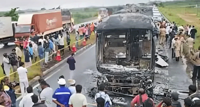 AP: కర్నూలు బస్సు ప్రమాద ఘటనపై పోలీసులు దర్యాప్తు చేస్తున్నారు. బైకర్ శివశంకర్ స్నేహితుడిని పోలీసులు గుర్తించారు. శుక్రవారం వేకువజామున శివశంకర్ స్నేహితుడు ఎర్రిస్వామితో కలిసి బైక్పై డోన్ బయలుదేరాడు. వేమూరి కావేరి ట్రావెల్స్ బస్సు ఢీకొట్టడంతో వారిద్దరూ ఎగిరిపడ్డారు. శివశంకర్ అక్కడికక్కడే మృతి చెందగా.. ఎర్రిస్వామి తీవ్రంగా గాయపడ్డాడు. దాంతో ఎర్రిస్వామి ఘటనా స్థలి నుంచి వెళ్లిపోయాడు. అతడిని పోలీసులు విచారిస్తున్నారు.