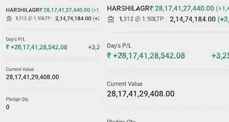 మధ్యప్రదేశ్ కు చెందిన నోటరీ, ప్రైవేటు స్కూలు యజమాని వినోద్ డోంగ్లే తలరాత రాత్రికి రాత్రే మారిపోయింది. ఆయన డీమ్యాట్ ఖాతాలోని ఓ కంపెనీ షేర్ల విలువ కోట్లకు పెరిగిపోయింది. మొత్తంగా వెయ్యికి పైగా షేర్లు ఉండడంతో ఆయన సంపద ఏకంగా రూ.2,817 కోట్లకు చేరినట్లు చూపించింది. దీంతో తన తలరాత మారిపోయిందని, ప్రపంచంలోని లాటరీలన్నీ ఒకేసారి గెల్చానని భావించినట్లు డోంగ్లే చెప్పారు. అయితే, ఈ ఆనందం కాసేపటికే ఆవిరైపోయింది.అప్పటి వరకు ఒక్కో షేరు రూ.2.14 కోట్లు చొప్పున 1,312 షేర్ల విలువ రూ.2,817 కోట్లుగా చూపించగా.. కాసేపటికే ఆ అంకెలన్నీ మాయమై పాత విలువనే చూపించాయి. ఒక్కో షేరు 63 పైసల చొప్పున రూ.826.56 పైసలుగా చూపించింది. హర్సిల్ ఆగ్రో లిమిటెడ్ కంపెనీ షేర్ల విషయంలో వినోద్ డోంగ్లేకు ఈ విచిత్ర అనుభవం ఎదురైంది. కాసేపే అయినా అంకెల్లో తను బిలియనీర్ ను అయ్యానని వినోద్ డోంగ్లే సంతోషం వ్యక్తం చేశారు.