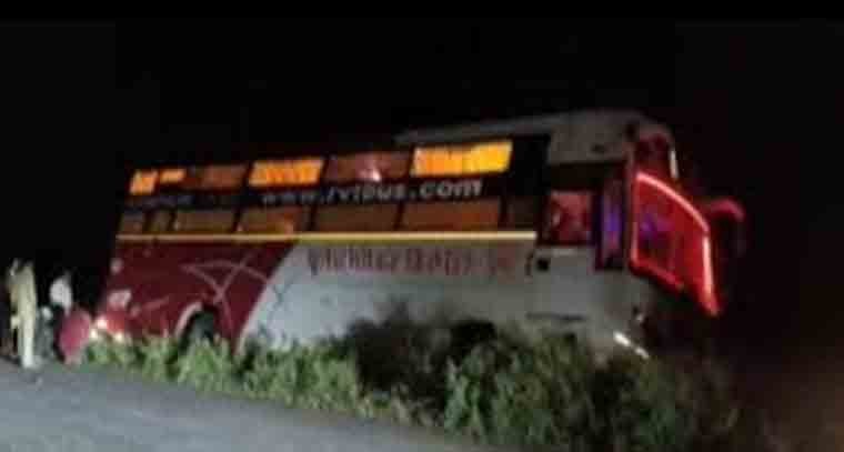 అదుపుతప్పి ముళ్లకంపలోకి దూసుకెళ్లిన ప్రైవేటు ట్రావెల్స్‌ బస్సు