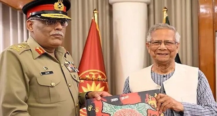 భారతదేశానికి, బంగ్లాదేశ్కు మధ్య దౌత్యపరమైన సంబంధాలు మరోసారి ఉద్రిక్తతకు లోనయ్యాయి. దీనికి కారణం బంగ్లాదేశ్ చీఫ్ అయిన యూనస్ యొక్క రెచ్చగొట్టే చర్య. ఇటీవల పాక్ ఆర్మీ జనరల్కు ఆయన బహుమతిగా ఇచ్చిన ఒక పుస్తకం తీవ్ర దుమారాన్ని రేపింది. ఆ పుస్తకం కవర్ పేజీపై భారత దేశంలోని అస్సాం మరియు ఇతర ఈశాన్య రాష్ట్రాలను బంగ్లాదేశ్ మ్యాప్లో భాగంగా చూపించడం భారత ప్రభుత్వ వర్గాలలో ఆందోళన కలిగించింది. ఈ చర్య అంతర్జాతీయ సరిహద్దులను ఉల్లంఘించే ప్రయత్నంగా, స్నేహపూర్వక వాతావరణాన్ని దెబ్బతీసే కుట్రగా పరిగణించబడుతోంది.