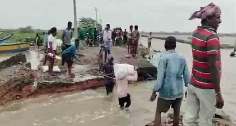తుఫాన్ బీభత్సానికి పశ్చిమ గోదావరి జిల్లా నరసాపురం మండలం చినలంకకు వెళ్లే నల్లీక్రిక్ కాజ్వే వంతెనకు గండిపడింది. సముద్రకెరటాలు ఎగసి.. కాజ్వేను ముంచెత్తడంతో గండిపడి రోడ్డు రెండు ముక్కలైంది. దీంతో దానికి ఆనుకుని ఉన్న వందల ఎకరాల్లోని ఆక్వా చెరువులు నీట మునిగాయి. మత్స్యకారులు చేపల వేటకు దీని గుండానే వెళతారు. దీని పునర్నిర్మాణానికి ప్రభుత్వం ఇటీవల నిధులు మంజూరు చేసింది. త్వరలో పనులు చేపట్టాల్సి ఉంది.