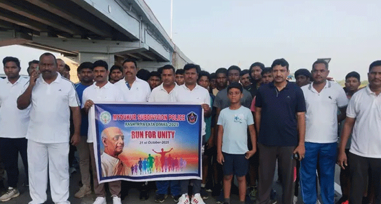 జాతీయ ఐక్యత దినోత్సవం, సర్ధార్ వల్లభాయ్ పటేల్ జన్మదినాన్ని పురస్కరించుకొని శుక్రవారం మైదుకూరులో “రన్ ఫర్ యూనిటీ” కార్యక్రమాన్ని మైదుకూరు డీఎస్పీ జి. రాజేంద్రప్రసాద్ ప్రారంభించారు. ఈ సందర్భంగా డీఎస్పీ మాట్లాడుతూ ఐక్యతే మహా బలం అని, ఐక్యత లేకపోవడమే సమస్యలు ఎదుర్కోవాల్సిన పరిస్థితి వస్తున్నదని తెలిపారు. ఈ కార్యక్రమంలో పట్టణ సీఐ కె. రమణారెడ్డి, పోలీస్ సిబ్బంది, మేధా కళాశాల విద్యార్థులు పాల్గొన్నారు.