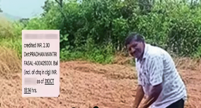 పాల్ఘర్ జిల్లా వాడ తాలూకా శిలోత్తర్ గ్రామానికి చెందిన రైతు మధుకర్ బాబూరావు పాటిల్ ఈ దయనీయ పరిస్థితిని ఎదుర్కొన్నారు. ఆగ్రో అండ్ ఫార్మర్స్ వెల్ఫేర్ మంత్రిత్వ శాఖ జారీ చేసిన రసీదు ప్రకారం.. ప్రధానమంత్రి ఫసల్ బీమా యోజన కింద పాటిల్ తన 2.51 హెక్టార్ల భూమికి రూ.1,53,110 పరిహారం పొందడానికి అర్హులు. ఇందుకోసం ఆయన ఈ ఏడాది రూ.1,148.32 ప్రీమియం కూడా చెల్లించారు. కానీ శుక్రవారం పాటిల్కు వచ్చిన సందేశంలో కేవలం రూ.2.30 మాత్రమే తన ఖాతాలో జమ అయినట్లు చూపింది.