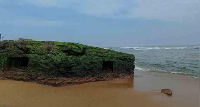 విశాఖలోని ఆర్కే బీచ్ లో ఓ ఆసక్తికర దృశ్యం సందర్శకులను ఆశ్చర్యానికి గురిచేసింది. ఎప్పుడూ అలలతో ఉప్పొంగే సముద్రం ఒక్కసారిగా భారీగా వెనక్కి తగ్గింది. దీంతో సముద్ర గర్భంలో సాధారణంగా కనిపించని భారీ శిలలు, రాళ్లు స్పష్టంగా తేలాయి. అంతేకాకుండా, బ్రిటిష్ కాలం నాటిదిగా భావిస్తున్న ఓ పురాతన బంకర్ కూడా బయటపడింది.ఈ ఊహించని పరిణామంతో పర్యాటకులు, స్థానికులు ఆసక్తిగా తీరానికి చేరుకున్నారు. సముద్రం వెనక్కి వెళ్లడంతో బయటపడిన రాళ్లపైకి ఎక్కి సందడి చేశారు. ముఖ్యంగా యువత సెల్ఫీలు, వీడియో రీల్స్ తీసుకుంటూ ఉత్సాహంగా కనిపించారు. ఇటీవల వరుస తుఫాన్లు, అల్పపీడనాలతో అల్లకల్లోలంగా కనిపించిన విశాఖ తీరం, కార్తీక పౌర్ణమి నాడు ప్రశాంతంగా మారడంతో పాటు ఇలా వెనక్కి వెళ్లడం చర్చనీయాంశమైంది.