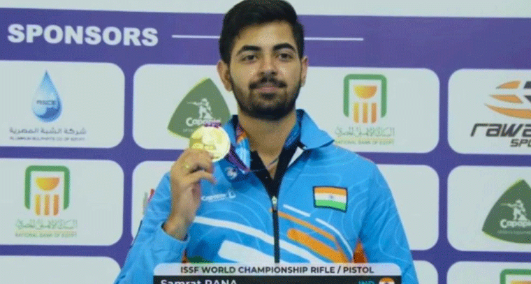 ఈజిప్టు రాజధాని కైరోలో జరుగుతున్న ISSF వరల్డ్ చాంపియన్షిప్లో భారత షూటర్ సామ్రాట్ రాణా మరో గొప్ప విజయం సాధించాడు. 22 ఏళ్ల సామ్రాట్ రాణా పురుషుల 10 మీటర్ల ఎయిర్ పిస్టల్ విభాగంలో 243.7 స్కోర్తో స్వర్ణ పతకం గెలుచుకున్నాడు.అందులోనూ, ఈ విభాగంలో ప్రపంచ చాంపియన్షిప్ టైటిల్ గెలిచిన మొదటి భారతీయుడిగా చరిత్రలో తన పేరు నమోదయింది.ఫైనల్లో రాణా చైనా షూటర్ హూ కైపై0.4 పాయింట్ల తేడాతో గెలిచాడు. ఈ ఈవెంట్లో మరో భారత షూటర్ వరుణ్ తోమార్ కాంస్య పతకం సాధించి, భారత్కు డబుల్ పోడియం సాధనలో కీలక పాత్ర వహించాడు.తద్వారా, పురుషుల 10 మీటర్ల ఎయిర్ పిస్టల్ టీమ్ విభాగంలో రాణా, వరుణ్ తోమార్, షర్వన్ కుమార్లు కలిసి స్వర్ణ పతకం సాధించారు.ఐదో భారతీయుడిగా చేరిన రాణా.10 మీటర్ల ఎయిర్ పిస్టల్ సింగిల్స్ విభాగంలో గోల్డ్ సాధించడంతో, రాణా ఒలింపిక్ చాంపియన్లు అభినవ్ బింద్రా, రుద్రాంక్ష్ పాటిల్, తేజస్విని సావంత్, శివ నర్వాల్, ఈషా సింగ్ (మిక్స్డ్ టీమ్) సరసన ఐదో భారతీయుడిగా చరిత్రలో నిలిచాడు.మను బాకర్ నిరాశ పరచడం.స్టార్ షూటర్ మను బాకర్ వ్యక్తిగత విభాగంలో ఆశించిన ఫలితం ఇవ్వలేకపోయినా, టీమ్ ఈవెంట్లో సిల్వర్ మెడల్ సాధించాడు. ఈషా సింగ్, సురుచి సింగ్లతో కలిసి వుమెన్స్ టీమ్ కూడా సిల్వర్ గెలుచుకుంది.పురుషుల 10 మీటర్ల ఎయిర్ పిస్టల్ సింగిల్స్లో సామ్రాట్ రాణా గోల్డ్ సాధించడంతో, ISSF వరల్డ్ చాంపియన్షిప్లో భారత పతకాల సంఖ్య 9కి చేరింది (3 గోల్డ్, 3 సిల్వర్, 3 బ్రాంజ్). పతకాల పట్టికలో చైనా 12 మెడల్స్తో అగ్రస్థానంలో ఉండగా, భారత్ రెండో స్థానంలో నిలిచింది.