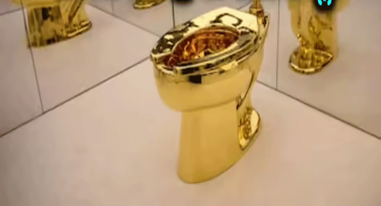 అయితే 2016లో ఇలాంటి బంగారు టాయిలెట్లను కాటెలాన్ రెండు తయారు చేశారు. అందులో ఒకదాన్ని న్యూయార్క్ గుగ్గెన్హైమ్ మ్యూజియంలో ప్రదర్శించారు. ఆ తర్వాత యూకేలోని బ్లెన్హైమ్ ప్యాలెస్లో ప్రదర్శిస్తుండగా దాన్ని కొందరు దొంగిలించారు. అయితే ఆ దొంగతనం కేసులో ఇద్దరు వ్యక్తులు దోషులుగా తేలినా.. వారు ఆ బంగారు టాయిలెట్ను ముక్కలు చేసి కరిగించి ఉంటారని దర్యాప్తు అధికారులు పేర్కొన్నారు.