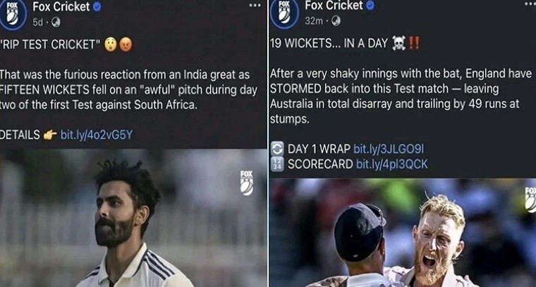 తాజాగా ఇంగ్లండ్-ఆస్ట్రేలియా మధ్య యాషెస్ సిరీస్లో ఒకే రోజులో 19 వికెట్లు పడగా, ఫాక్స్ క్రికెట్ “ఒక రోజులో 19 వికెట్లు… ఇదే టెస్టు క్రికెట్ సౌందర్యం!” అంటూ ఆనందంగా పోస్టులు పెట్టింది. అదే సమయంలో గతంలో భారత్-దక్షిణాఫ్రికా మధ్య టెస్టులో కేవలం 15 వికెట్లు పడగానే “RIP Test Cricket” అంటూ దుయ్యబట్టిన సంఘటన ఇప్పుడు తవ్వి తీయబడింది. ఈ డబుల్ స్టాండర్డ్స్ను అభిమానులు తమ కళ్లారా చూసి రోషం వ్యక్తం చేస్తున్నారు.