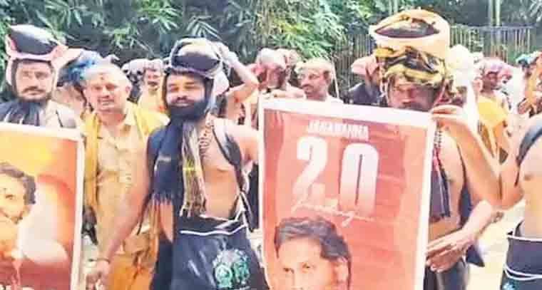 అయ్యప్ప స్వామి దీక్షను భక్తులు అత్యంత పవిత్రంగా భావిస్తారు. 41 రోజుల పాటు కఠోర నియమాలతో మణికంఠుడిని ఆరాధిస్తారు. అయితే, ఈ పవిత్రమైన దీక్షలోనూ కొందరు రాజకీయ భక్తిని ప్రదర్శిస్తూ వివాదాలకు కారణమవుతున్నారు. తాజాగా విశాఖ జిల్లా పెందుర్తికి చెందిన వైసీపీ నేతలు శబరిమల యాత్రలో జగన్ ఫొటోలతో బ్యానర్లు ప్రదర్శించడం తీవ్ర విమర్శలకు దారితీసింది.పెందుర్తి నియోజకవర్గానికి చెందిన పలువురు వైసీపీ నేతలు, కార్యకర్తలు అయ్యప్ప మాల ధరించి శబరిమలకు బయల్దేరారు. ఈ యాత్రలో వారు జగన్, మాజీ మంత్రి గుడివాడ అమర్నాథ్, ఇతర స్థానిక నేతల ఫొటోలతో కూడిన మూడు ఫ్లెక్సీలను ప్రదర్శించారు. 'జగన్ 2.0' అంటూ రాసి ఉన్న బ్యానర్లతో 'జై జగన్' అని నినాదాలు చేశారు. ఇందుకు సంబంధించిన వీడియోలు ప్రస్తుతం సోషల్ మీడియాలో వైరల్గా మారాయి.ఇలాంటి ఘటన జరగడం ఇది మొదటిసారి కాదు. కొన్ని రోజుల క్రితం అనకాపల్లి జిల్లా పాయకరావుపేటకు చెందిన వైసీపీ అయ్యప్ప స్వాములు కూడా ఇదే విధంగా జగన్ బ్యానర్లు ప్రదర్శించి, నినాదాలు చేశారు. ఆ ఘటన మరువక ముందే మరోసారి పెందుర్తిలో పునరావృతం కావడం గమనార్హం.