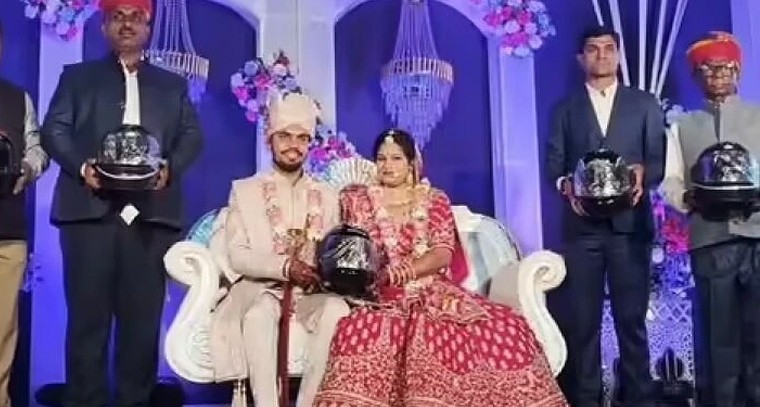 రాజస్థాన్లోని కుచామన్ నగర్ ప్రాంతంలో ఇటీవల జరిగిన ఒక వివాహ వేడుక సోషల్ మీడియాలో సంచలనంగా మారింది. సాధారణంగా పెళ్లిళ్లలో బంగారు నాణేలు, వెండి వస్తువులు, డబ్బు కవర్లు రిటర్న్ గిఫ్ట్గా ఇస్తుంటారు కానీ, ఇక్కడి వరుడి తండ్రి మనోజ్ బర్వాల్ మాత్రం అందరికీ ఊహించని బహుమతిని అందించారు. తన కూతురు సోను బర్వాల్ను యశ్ బెద్వాల్కు ఇచ్చి పెళ్లి చేసిన ఈ తండ్రి, అతిథులందరికీ రిటర్న్ గిఫ్ట్గా హెల్మెట్లను ప్రసాదించడం ద్వారా దేశవ్యాప్తంగా చర్చనీయాంశమయ్యారు.