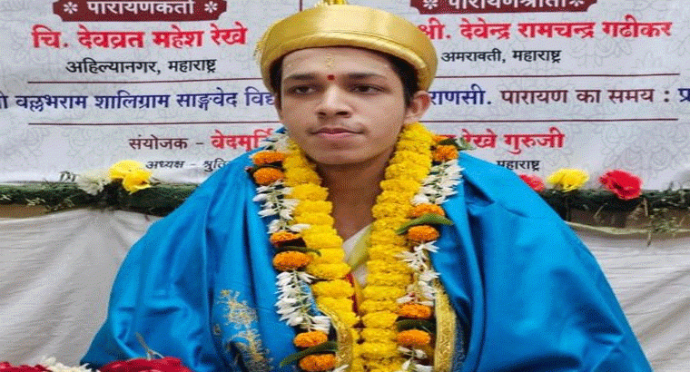 మహారాష్ట్రలోని అహిల్యానగర్కు చెందిన దేవవ్రత్ మహేష్ రేఖే.. వేదాద్యయనం కోసం కాశీ వెళ్లారు. వేదాలు నేర్చుకున్న తర్వాత.. శుక్ల యజుర్వేదాన్ని రాసింది చూడకుండానే.. ఏకబిగిన 50 రోజులపాటు 165 గంటలు.. 2000లకుపైగా మంత్రాలను ఆయన ఉచ్ఛరించారు. ఆధునిక భారతదేశ చరిత్రలో ఇలాంటి ఘనత సాధించడం ఇది రెండోసారి మాత్రమే కావడం విశేషం. దండక్రమ పారాయణం చేసిన దేవవ్రత్కు దండక్రమ విక్రమాదిత్య బిరుదును ప్రదానం చేశారు.