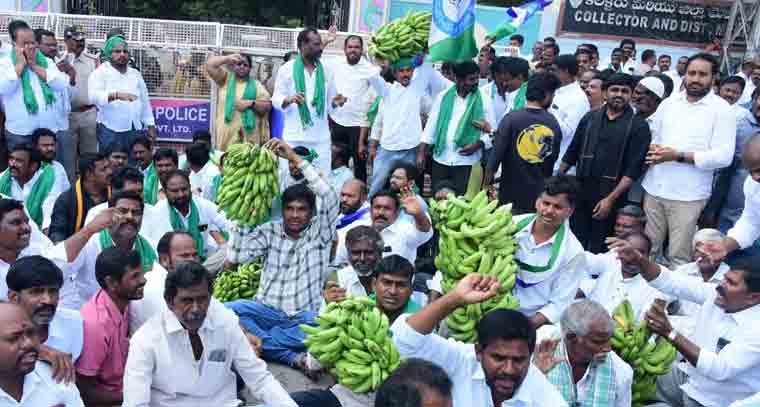 రాష్ట్ర రైతులు పండించిన అరటి పండ్ల ధర కిలో కేవలం 50 పైసలు మాత్రమే పలుకుతుండడం, ఉల్లిపాయల నుంచి టమాట వరకు ఏ పంటకూ గిట్టుబాటు ధర దక్కక అన్నదాతలు అవస్థ పడుతుండడాన్ని దేశం మొత్తానికి తెలియజేస్తూ సామాజిక మాధ్యమం ‘ఎక్స్’లో వైయస్ఆర్సీపీఅధ్యక్షుడు, మాజీ ముఖ్యమంత్రి వైఎస్ జగన్మోహన్రెడ్డి సోమవారం పోస్టు చేశారు. అన్నదాతలకు దన్నుగా నిలవాల్సిన చంద్రబాబు సర్కారు అందుకు పూర్తి భిన్నంగా వ్యవహరిస్తుండడాన్ని సూటిగా ప్రస్తావిస్తూ తీవ్రంగా ధ్వజమెత్తారు. అరటి పంటకు గిట్టుబాటు ధర కల్పించకపోవడాన్ని నిరసిస్తూ అనంతపురం జిల్లా కలెక్టర్ కార్యాలయం ఎదుట రైతులు భారీఎత్తున ధర్నా చేస్తున్న ఫొటోలను ట్యాగ్ చేస్తూ ‘‘సేవ్ ఫార్మర్స్’’ హ్యాష్ట్యాగ్తో ‘‘హలో ఇండియా... ఒక్కసారి ఆంధ్రప్రదేశ్ వైపు చూడండి’’ అంటూ వైఎస్ జగన్ ట్వీట్ చేశారు.