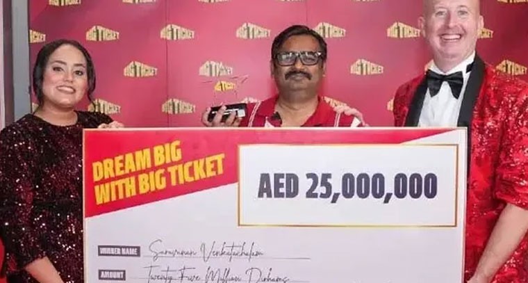 సౌదీలో నివసించే కేరళ వాసిని అదృష్టం వరించింది. సౌదీలో నివసించే పీవీ రాజన్ అబుదాబి బిగ్ టికెట్ కొనుగోలు చేయగా లాటరీలో 25 మిలియన్ దిర్హామ్లు గెలుచుకున్నాడు. ఇండియన్ కరెన్సీలో రూ.61.37కోట్లను గెలుచుకున్నాడు. దీంతో అతడి ఆనందంలో అవదుల్లేకుండా పోయాయి. బతుకుదెరువు కోసం సౌదీ వెళితే అదృష్టం వరించి కోటీశ్వరుడు అయిపోయాడు. తాను 15ఏళ్లుగా లాటరీ టికెట్లు కొనుగోలు చేస్తున్నానని పీవీ రాజన్ వెల్లడించారు.