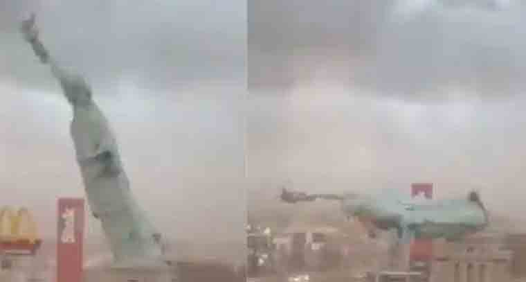 బ్రెజిల్లో భారీ ఈదురు గాలుల కారణంగా ఓ షాపింగ్ స్టోర్ వెలుపల ఏర్పాటు చేసిన స్టాట్యూ ఆఫ్ లిబర్టీ నమూనా విగ్రహం కుప్పకూలింది. గ్వాబా నగరంలో నిన్న ఈ ఘటన చోటుచేసుకుంది. అదృష్టవశాత్తు ఈ ప్రమాదంలో ఎవరికీ ఎలాంటి గాయాలు కాలేదు. ఈ ఘటనకు సంబంధించిన వీడియో సోషల్ మీడియాలో వైరల్ అయింది.పోర్టో అలెగ్రే మెట్రోపాలిటన్ ప్రాంతంలోని 'హవన్' రిటైల్ స్టోర్ కార్ పార్కింగ్ ఏరియాలో ఈ 24 మీటర్ల ఎత్తైన విగ్రహాన్ని ఏర్పాటు చేశారు. సోమవారం ఆ ప్రాంతంలో గంటకు 90 కిలోమీటర్లకు పైగా వేగంతో బలమైన గాలులు వీచాయి. ఈ గాలుల ధాటికి తట్టుకోలేక విగ్రహం నెమ్మదిగా పక్కకు ఒరిగి, పార్కింగ్లో ఉన్న వాహనాల సమీపంలో కూలిపోయింది.ఈ ఘటనపై హవన్ స్టోర్ యాజమాన్యం ఒక ప్రకటన విడుదల చేసింది. దేశంలో నిర్దేశించిన సాంకేతిక ప్రమాణాలకు అనుగుణంగానే విగ్రహాన్ని నిర్మించామని, అయినప్పటికీ అంతర్గత విచారణ జరుపుతున్నామని తెలిపింది. ప్రమాదాన్ని ముందే పసిగట్టి ఆ ప్రాంతాన్ని ఖాళీ చేయించడం వల్ల ఎలాంటి ప్రాణనష్టం జరగలేదని పేర్కొంది. బ్రెజిల్ అధికారులు కూడా ఈ ఘటనపై విచారణ చేపట్టారు. స్థానిక అధికారులు వేగంగా స్పందించారని గ్వాబా మేయర్ మార్సెలో మరానటా ప్రశంసించారు.