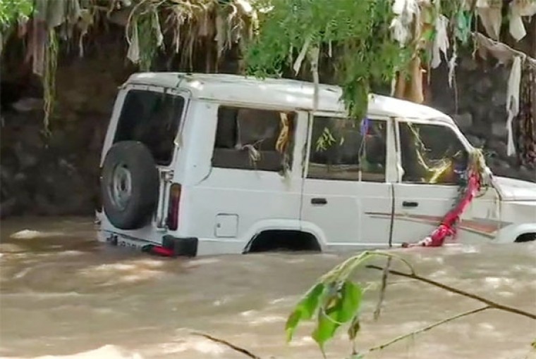 పూణే జిల్లాలో భారీ వర్షాలు..వరదలో చిక్కుకున్న కారు